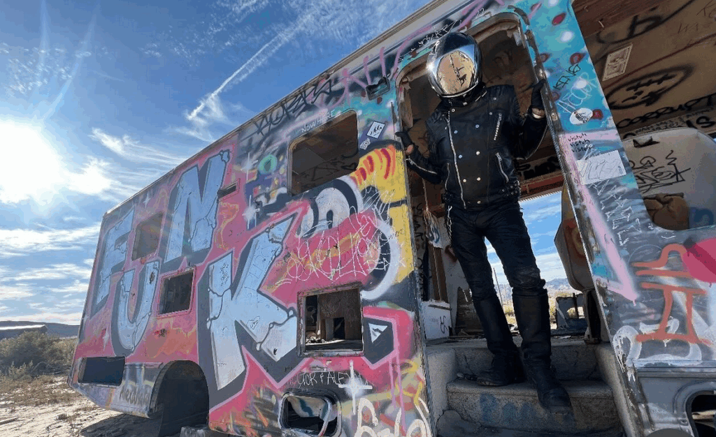 Daniel Ash: We’re not really hiding but we wanted to avoid those bland band-standing-against-a-wall shots. You know, the supermarket snapshot look. So, we styled them to feel a bit more cinematic — more suggestive than literal. In the video, On a Rocker, you never even see my face under the helmet — that’s deliberate. It could be anyone. I like that ambiguity. It avoids cliché and keeps the focus on the mood rather than the person.