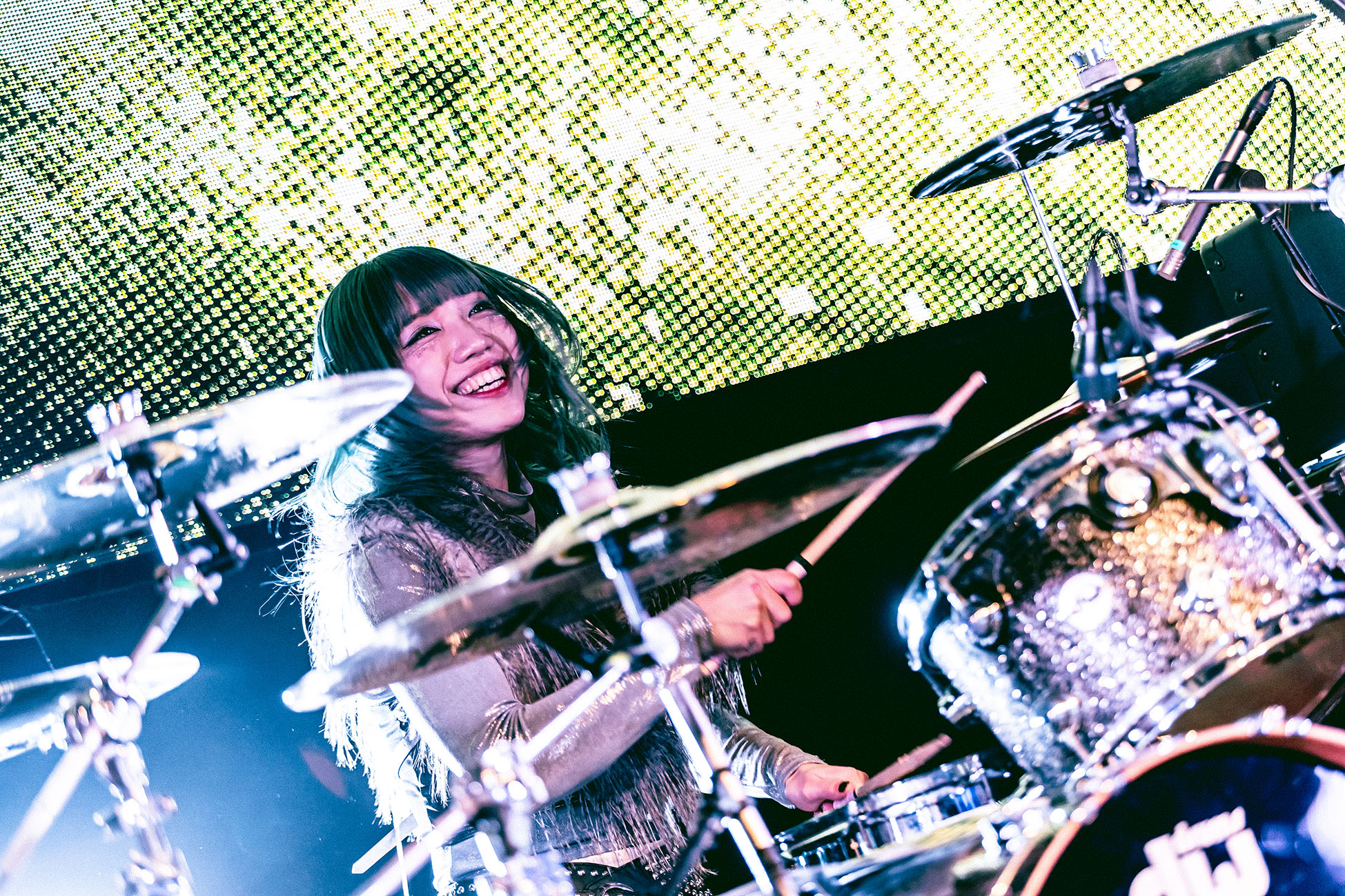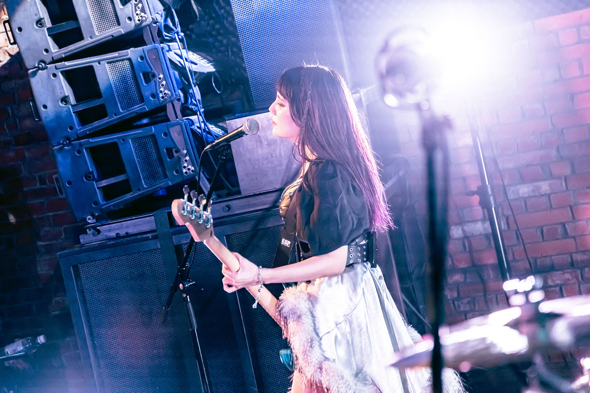 When the lights dimmed at 7:10 PM., the members entered one by one — drummer Kano, guitarist Toki, bassist Miho — with vocalist Anna appearing last, leaning into the mic to ask simply, “Are you ready?” From the first moments, it was clear: this did not look like a debut. The way they moved, the way they breathed the stage, the quiet certainty behind each gesture — everything signaled experience, not hesitation. Kano’s drumming hit first: an immediate powerful force that anchored the entire room. Miho, who once believed her music career might have ended for good (press conference), played with a grounded intensity that comes only from someone who has returned to a place they thought they’d lost. Toki’s precision and energy created an elegant counterbalance — the kind of presence that shows deep respect for both the music and the musicians beside her. And Anna commanded the stage with ease, reaching toward the hands of the front row, locking eyes with fans, performing as if she had always belonged there.